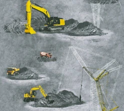 Tapete Kinder Bagger Kran Truck grau gelb 35870-2