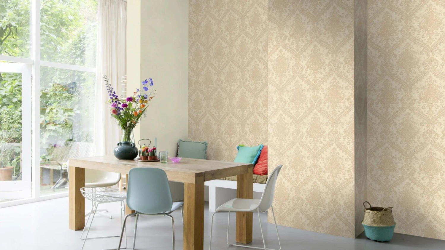 Rasch hat mit der Saphira Kollektion glanzvolle Designs auf den Markt gebracht. Die Tapete in creme-beige schafft einen harmonischen Raum mit einer gemütlichen Atmosphäre zum Wohlfühlen. Metallische Effekte sorgen für dezente Hingucker und fügen sich in nahezu jedes Interior perfekt ein.